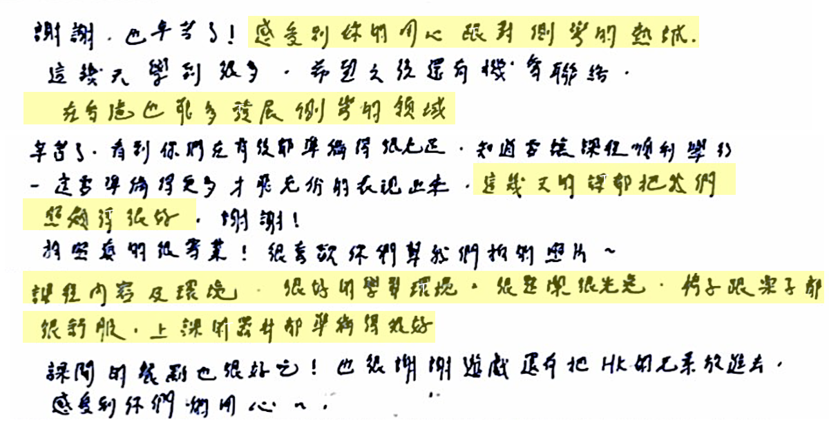 以下是歷屆 BSPTS Level 1 課程學員手寫回饋摘錄